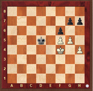Partiet fortsatte 1. gxf6?? (I stället skulle vit spelat 1. Kg4 Ke4 2. g6 h6 Kh5! med remi.) 1… gxf6 2 Kg4 Ke4 3. Kh3 Kf4 och vit gav upp.